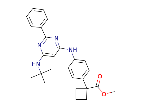 - Synonyms:1-[4-(6-tert-butylamino-2-phenyl-pyrimidin-4-ylamino)-phenyl]-cyclobutanecarboxylic acid methyl ester