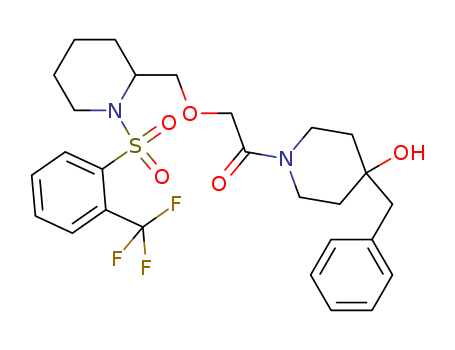 1-(4-benzyl-4-hydroxypiperidin-1-yl)-2-((1-(2-(trifluoromethyl)phenylsulfonyl)piperidin-2-yl)methoxy)ethanone(1021203-22-4)