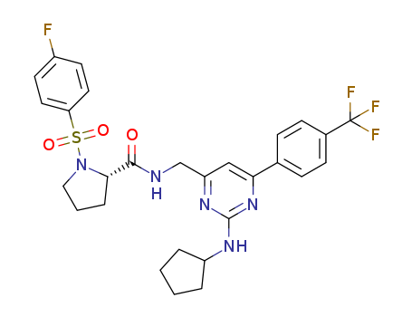 1-(4-fluoro-benzenesulfonyl)-pyrrolidine-2S-carboxylic acid [2-cyclopentylamino-6-(4-trifluoromethyl-phenyl)-pyrimidin-4-ylmethyl]-amide(1257434-79-9)