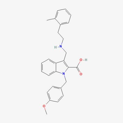- Synonyms:892112-28-6;1-(4-methoxybenzyl)-3-{[(2-methylphenethyl)amino]methyl}-1H-indole-2-carboxylic acid;1-[(4-methoxyphenyl)methyl]-3-[[2-(2-methylphenyl)ethylamino]methyl]indole-2-carboxylic acid;1-[(4-METHOXYPHENYL)METHYL]-3-({[2-(2-METHYLPHENYL)ETHYL]AMINO}METHYL)-1H-INDOLE-2-CARBOXYLIC ACID;1-[(4-Methoxyphenyl)methyl]-3-[[[2-(2-methylphenyl)ethyl]amino]methyl]-1H-indole-2-carboxylic acid;DTXSID001115157;SR-01000142283;SR-01000142283-1