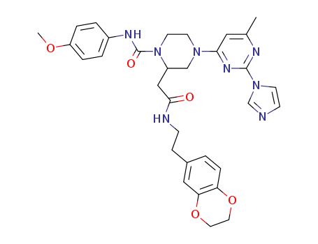 1-(4-methoxyphenyl)aminocarbonyl-4-[6-methyl-2-(1H-imidazol-1-yl)pyrimidin-4-yl]-N-[2-(1,4-benzodioxan-6-yl)ethyl]piperazine-2-acetamide(212639-53-7)
