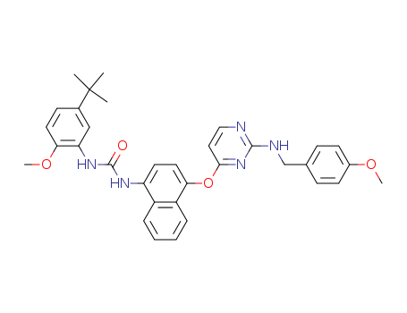 1-(5-tert-Butyl-2-methoxy-phenyl)-3-{4-[2-(4-methoxy-benzylamino)-pyrimidin-4-yloxy]-naphthalen-1-yl}-urea(476010-50-1)