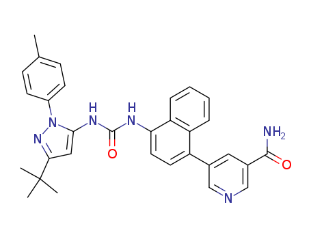 - 847023-01-2/1-[5-tert-butyl-2-p-tolyl-2H-pyrazol-3-yl]-3-[4-(5-carbamylpyridin-3-yl)naphthalen-1-yl]-urea