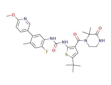 1-(5-tert-butyl-3-(2,2-dimethyl-3-oxopiperazine-1-carbonyl)thiophen-2-yl)-3-(2-fluoro-5-(6-methoxypyridin-3-yl)-4-methylphenyl)urea(1207877-17-5)