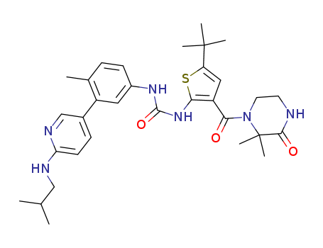 1-(5-tert-butyl-3-(2,2-dimethyl-3-oxopiperazine-1-carbonyl)thiophen-2-yl)-3-(3-(6-(isobutylamino)pyridin-3-yl)-4-methylphenyl)urea(1207877-08-4)