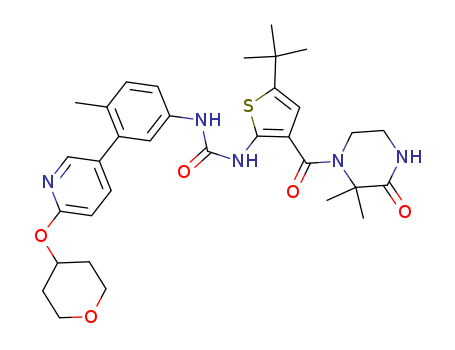 1-(5-tert-butyl-3-(2,2-dimethyl-3-oxopiperazine-1-carbonyl)thiophen-2-yl)-3-(4-methyl-3-(6-(tetrahydro-2H-pyran-4-yloxy)pyridin-3-yl)phenyl)urea(1207876-58-1)
