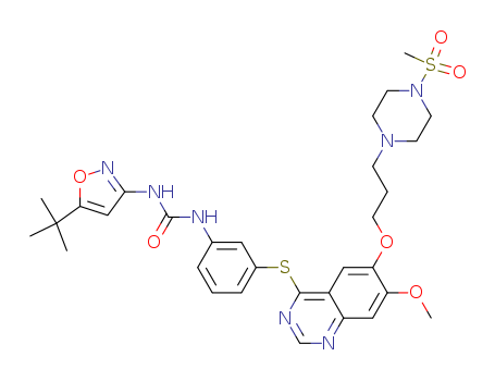 - Name: 1-(5-tert-butylisoxazol-3-yl)-3-(3-(7-methoxy-6-(3-(4-(methylsulfonyl)piperazin-1-yl)propoxy)quinazolin-4-ylthio)phenyl)urea