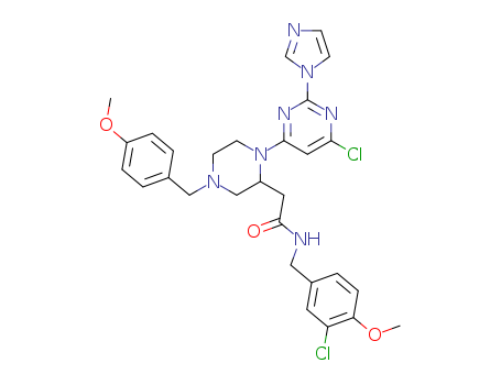 1-[6-chloro-2-(1H-imidazol-1-yl)pyrimidin-4-yl]-N-[(3-chloro-4-methoxyphenyl)methyl]-4-[(4-methoxyphenyl)methyl]piperazine-2-acetamide(212642-21-2)