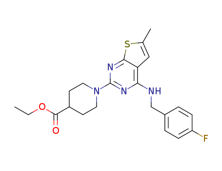 1-[6-methyl-4-(4-fluorobenzylamino)-thieno-[2,3-d]-pyrimidin-2-yl]-piperidinyl-4-carboxylic acid ethylester(1099529-46-0)