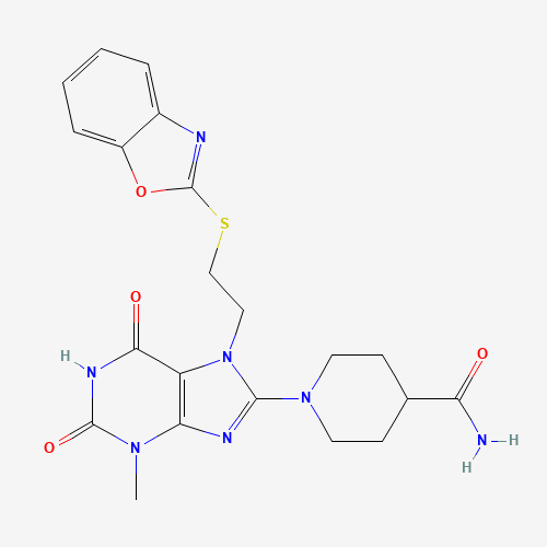 1-(7-(2-(benzo[d]oxazol-2-ylthio)ethyl)-3-methyl-2,6-dioxo-2,3,6,7-tetrahydro-1H-purin-8-yl)piperidine-4-carboxamide