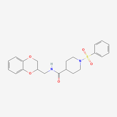 1-(benzenesulfonyl)-N-(2,3-dihydro-1,4-benzodioxin-3-ylmethyl)piperidine-4-carboxamide