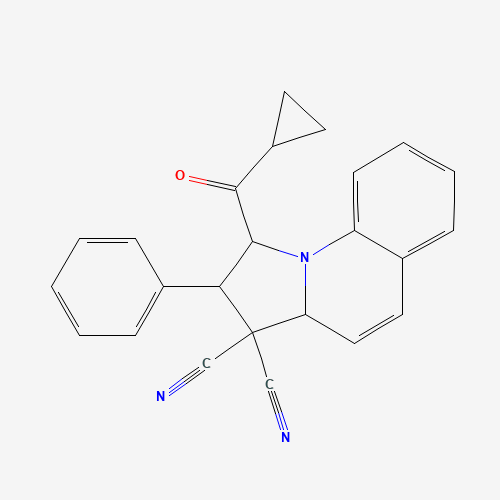 - Synonyms:Oprea1_044942;DTXSID501121270;STL321056;AKOS022132721;302326-02-9;SR-01000026469;SR-01000026469-1;Z56769201;1-(Cyclopropylcarbonyl)-1,2-dihydro-2-phenylpyrrolo[1,2-a]quinoline-3,3(3aH)-dicarbonitrile;1-(cyclopropylcarbonyl)-2-phenyl-1,2-dihydropyrrolo[1,2-a]quinoline-3,3(3aH)-dicarbonitrile