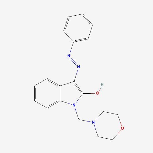 - Synonyms:321970-22-3;1-(morpholinomethyl)-1H-indole-2,3-dione 3-(N-phenylhydrazone);(3Z)-1-[(morpholin-4-yl)methyl]-3-(2-phenylhydrazin-1-ylidene)-2,3-dihydro-1H-indol-2-one;1-(morpholin-4-ylmethyl)-3-phenyldiazenylindol-2-ol;AG-664/31889005;AKOS003617837;AKOS030244028;1M-308S;Z56790703;(Z)-1-(morpholinomethyl)-3-(2-phenylhydrazono)indolin-2-one;1-(4-morpholinylmethyl)-1H-indole-2,3-dione 3-(phenylhydrazone)