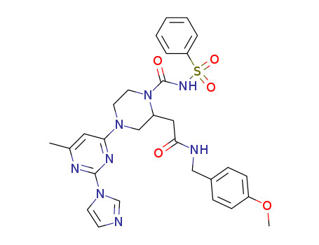 1-(phenylsulfonyl)aminocarbonyl-4-[6-methyl-2-(1H-imidazol-1-yl)pyrimidin-4-yl]-N-[(4-methoxyphenyl)methyl]piperazine-2-acetamide(212639-39-9)