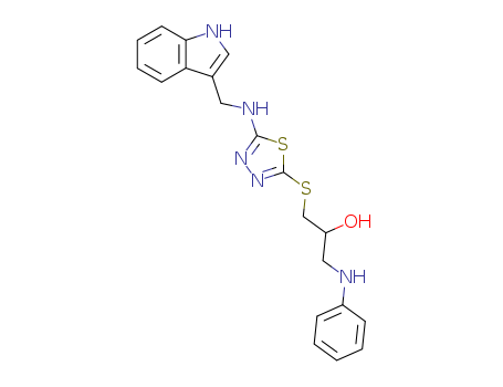 - Synonyms:1-Anilino-3-((5-((3-indolylmethyl)amino)-2-thiadiazolyl)thio)-2-propanol;2-Propanol,1-((5-((1H-indol-3-ylmethyl)amino)-1,3,4-thiadiazol-2-yl)thio)-3-(phenylamino);2-Propanol,1-anilino-3-((5-((3-indolylmethyl)amino)-2-thiadiazolyl)thio);