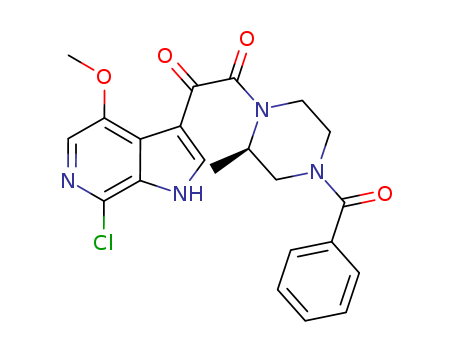 1-benzoyl-3-(R)-methyl-4-[(7-chloro-4-methoxy-6-azaindol-3yl)oxoacetyl]piperzine(446285-04-7)