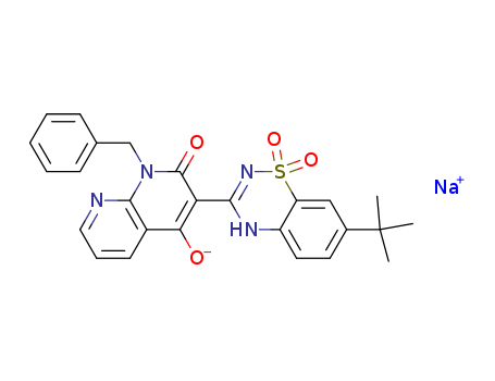 - Name: 1-benzyl-3-(7-tert-butyl-1,1-dioxido-4H-1,2,4-benzothiadiazin-3-yl)-4-hydroxy-1,8-naphthyridin-2(1H)-one sodium salt
