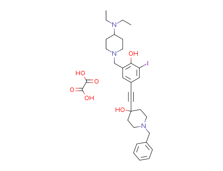 - Name: 1-benzyl-4-(2-(3-((4-(diethylamino)piperidin-1-yl)methyl)-4-hydroxy-5-iodophenyl)ethynyl)piperidin-4-ol oxalate