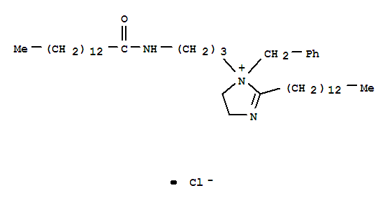 - Synonyms:1H-Imidazolium,4,5-dihydro-1-[3-[(1-oxotetradecyl)amino]propyl]-1-(phenylmethyl)-2-tridecyl-,chloride (9CI)