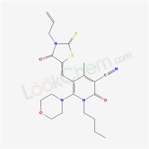 - Name: 1-butyl-4-methyl-6-morpholin-4-yl-2-oxo-5-[(4-oxo-3-prop-2-en-1-yl-2-thioxo-1,3-thiazolidin-5-ylidene)methyl]-1,2-dihydropyridine-3-carbonitrile