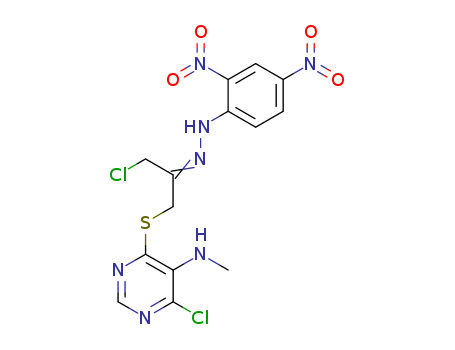 - 35235-91-7/1-chloro-3-(6-chloro-5-methylamino-pyrimidin-4-ylsulfanyl)-propan-2-one (2,4-dinitro-phenyl)-hydrazone