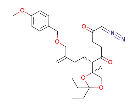 - Synonyms:1-diazo-6-(2,2-diethyl-4-methyl-[1,3]dioxolan-4-yl)-9-(4-methoxy-benzyloxymethyl)-dec-9-ene-2,5-dione