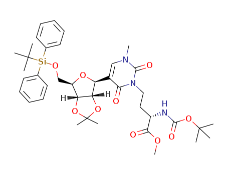 1-methyl-3-[(S)-3-N-(tert-butoxycarbonyl)amino-3-methoxycarbonylpropyl]-5'-O-(tert-butyldiphenylsilyl)-2',3'-O-(isopropylidene)pseudouridine(1024616-77-0)
