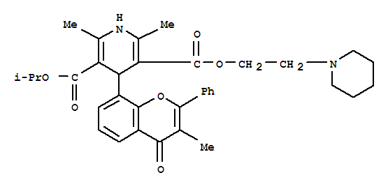 - Synonyms:3,5-Pyridinedicarboxylicacid,1,4-dihydro-2,6-dimethyl-4-(3-methyl-4-oxo-2-phenyl-4H-1-benzopyran-8-yl)-,1-methylethyl 2-(1-piperidinyl)ethyl ester (9CI)