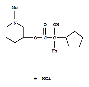 - Synonyms:Benzeneaceticacid, a-cyclopentyl-a-hydroxy-, 1-methyl-3-piperidinylester, hydrochloride (9CI); Mandelic acid, a-cyclopentyl-, 1-methyl-3-piperidyl ester,hydrochloride (7CI,8CI); 3-Piperidinol, 1-methyl-, a-cyclopentylmandelate (estr); NSC 172247