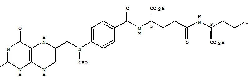 - Synonyms:Glutamicacid, N-[N-[p-[N-[(2-amino-5,6,7,8-tetrahydro-4-hydroxy-6-pteridinyl)methyl]formamido]benzoyl]-L-g-glutamyl]-, L- (8CI); L-Glutamicacid,N-[N-[4-[[(2-amino-1,4,5,6,7,8-hexahydro-4-oxo-6-pteridinyl)methyl]formylamino]benzoyl]-L-g-glutamyl]-;10-Formyltetrahydropteroyldiglutamate; 10-Formyltetrahydropteroyldiglutamicacid