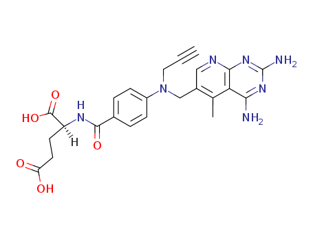 - Synonyms:L-Glutamicacid, N-[4-[[(2,4-diamino-5-methylpyrido[2,3-d]pyrimidin-6-yl)methyl]-2-propynylamino]benzoyl]-(9CI); Pyrido[2,3-d]pyrimidine, L-glutamic acid deriv.