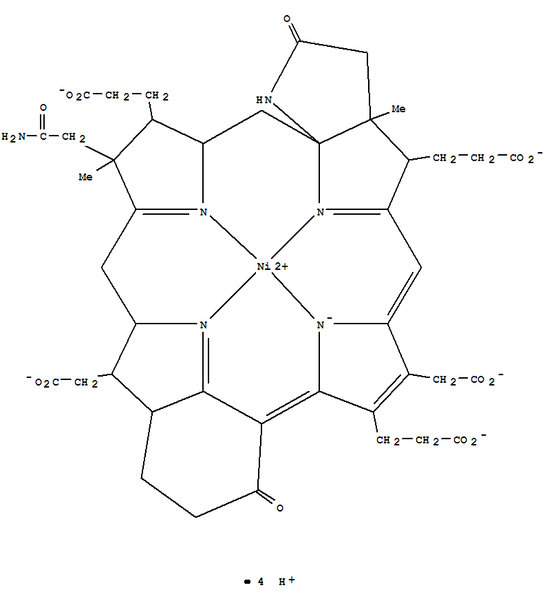 - Synonyms:1H-7,10-Imino-14,16-methano-21,18:22a,5-dinitrilopyrrolo[2,3-i][1]benzazacyclononadecine,nickelate(4-) deriv.;1H-7,10-Imino-14,16-methano-21,18:22a,5-dinitrilopyrrolo[2,3-i][1]benzazacyclononadecine-4,9,20-tripropanoicacid,19-(2-amino-2-oxoethyl)-8,25-bis(carboxymethyl)-2,3,3a,4,11,12,13,14,16,17,19,20,21,22-tetradecahydro-3a,19-dimethyl-2,11-dioxo-,nickel complex, stereoisomer