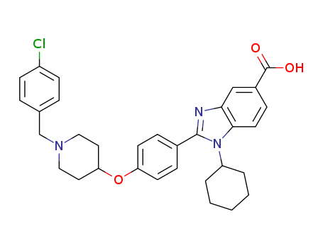 - Name: 1H-Benzimidazole-5-carboxylic acid, 2-[4-[[1-[(4-chlorophenyl)methyl]-4-piperidinyl]oxy]phenyl]-1-cyclohexyl-