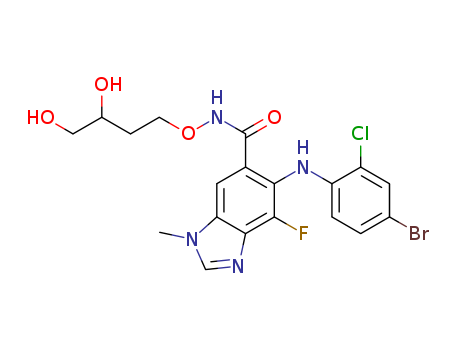 - Name: 1H-Benzimidazole-6-carboxamide, 5-[(4-bromo-2-chlorophenyl)amino]-N-(3,4-dihydroxybutoxy)-4-fluoro-1- methyl-