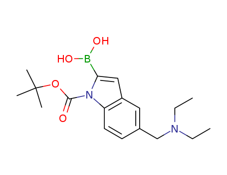 - Synonyms:1H-Indole-1-carboxylic acid, 2-borono-5-[(diethylamino)methyl]-, 1-(1,1-dimethylethyl) ester;2-Borono-5-[(diethylamino)methyl]-1H-indole-1-carboxylic acid 1-(1,1-dimethylethyl) ester