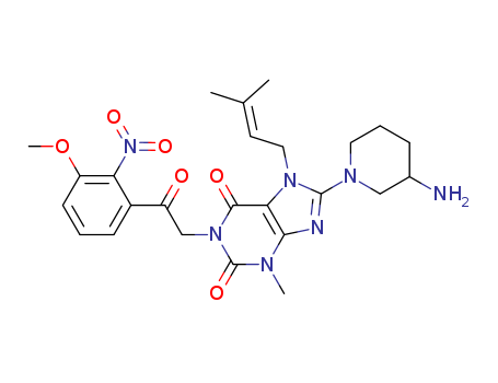 - Name: 1H-Purine-2,6-dione, 8-(3-amino-1-piperidinyl)-3,7-dihydro-1-[2-(3-methoxy-2-nitrophenyl)-2- oxoethyl]-3-methyl-7-(3-methyl-2-butenyl)-