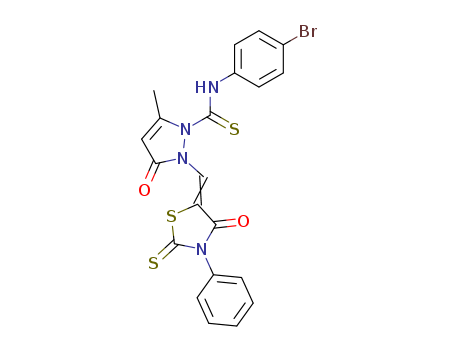 - Name: 1H-Pyrazole-1-carbothioamide,N-(4-bromophenyl)-2,3-dihydro-5-methyl-3-oxo-2-[(4-oxo-3-phenyl-2-thioxo-5-thiazolidinylidene)methyl]-