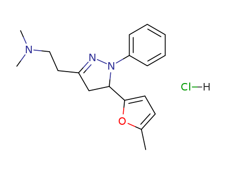 - Synonyms:1H-Pyrazole-3-ethanamine,4,5-dihydro-N,N-dimethyl-5-(5-methyl-2-furanyl)-1-phenyl-, monohydrochloride(9CI); 2-Pyrazoline, 3-[2-(dimethylamino)ethyl]-5-(5-methyl-2-furyl)-1-phenyl-,hydrochloride (6CI,7CI)