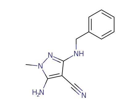 1H-Pyrazole-4-carbonitrile, 5-amino-1-methyl-3-[(phenylmethyl)amino]-(65889-76-1)