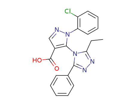 1H-Pyrazole-4-carboxylic acid, 1-(2-chlorophenyl)-5-(3-ethyl-5-phenyl-4H-1,2,4-triazol-4-yl)-(64257-18-7)