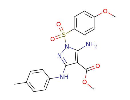 - Name: 1H-Pyrazole-4-carboxylic acid, 5-amino-1-[(4-methoxyphenyl)sulfonyl]-3-[(4-methylphenyl)amino]-, methyl ester
