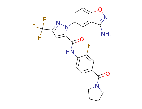 1H-Pyrazole-5-carboxamide, 1-(3-amino-1,2-benzisoxazol-5-yl)-N-[2-fluoro-4-(1-pyrrolidinylcarbonyl) phenyl]-3-(trifluoromethyl)-(218298-94-3)