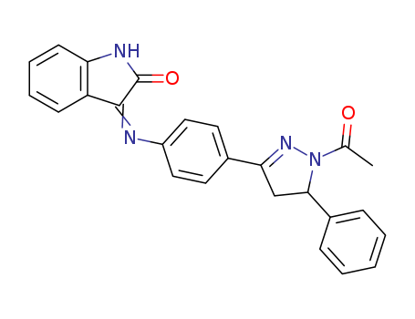 1H-Pyrazole, 1-acetyl-3-[4-[(1,2-dihydro-2-oxo-3H-indol-3-ylidene)amino]phenyl]-4,5- dihydro-5-phenyl-(73129-71-2)