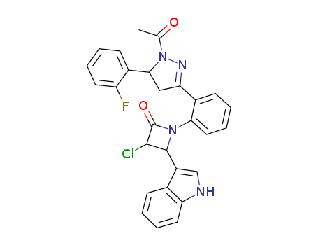- Name: 1H-Pyrazole, 4,5-dihydro-1-acetyl-3-(2-(3-chloro-2-(1H-indol-3-yl)-4-oxo-1-azetidinyl)phenyl)-5-(2-fluorophenyl)-