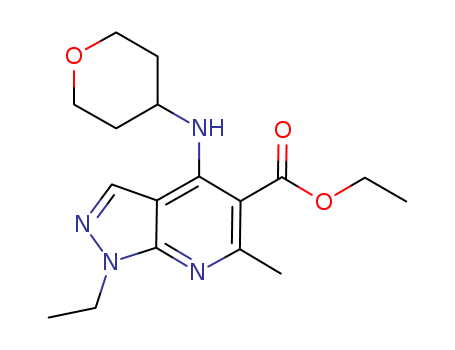 - Name: 1H-Pyrazolo[3,4-b]pyridine-5-carboxylic acid, 1-ethyl-6-methyl-4-[(tetrahydro-2H-pyran-4-yl)amino]-, ethyl ester