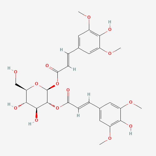 - Synonyms:1,2-di-O-sinapoyl-beta-D-glucose;1,2-Bis-O-sinapoyl-beta-D-glucoside;sinapoyl 2-O-sinapoyl-beta-D-glucoside;1-O-[(2E)-3-(4-hydroxy-3,5-dimethoxyphenyl)prop-2-enoyl]-2-O-[(2E)-3-(4-hydroxy-3,5-dimethoxyphenyl)prop-2-enoyl]-beta-D-glucopyranose;C04275;91095-79-3;CHEBI:27993;DTXSID50904963;1,2-di-O-sinapoyl beta-D-glucose;1,2-Bis-O-sinapoyl-beta-D-glucose;1,2-bis-O-sinapoyl beta-D-glucoside;[(2S,3R,4S,5S,6R)-4,5-dihydroxy-2-[(E)-3-(4-hydroxy-3,5-dimethoxyphenyl)prop-2-enoyl]oxy-6-(hydroxymethyl)oxan-3-yl] (E)-3-(4-hydroxy-3,5-dimethoxyphenyl)prop-2-enoate;Q27103449