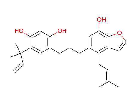 1,3-Benzenediol,4-(1,1-dimethyl-2-propen-1-yl)-6-[3-[7-hydroxy-4-(3-methyl-2-buten-1-yl)-5-benzofuranyl]propyl]-(104778-07-6)