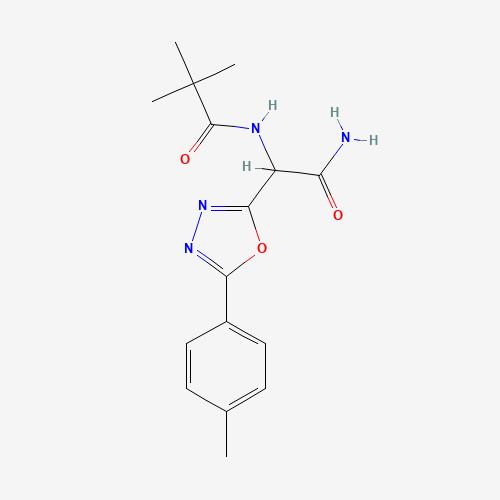 - Synonyms:1246644-56-3;1,3,4-Oxadiazole-2-acetamide, alpha-[(2,2-dimethyl-1-oxopropyl)amino]-5-(4-methylphenyl)-;DTXSID701129618;STL218860;AKOS015861431;alpha-[(2,2-Dimethyl-1-oxopropyl)amino]-5-(4-methylphenyl)-1,3,4-oxadiazole-2-acetamide;N-{2-amino-1-[5-(4-methylphenyl)-1,3,4-oxadiazol-2-yl]-2-oxoethyl}-2,2-dimethylpropanamide