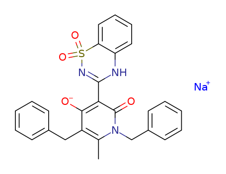 - Name: 1,5-dibenzyl-3-(1,1-dioxido-4H-1,2,4-benzothiadiazin-3-yl)-4-hydroxy-6-methyl-2(1H)-pyridinone sodium salt