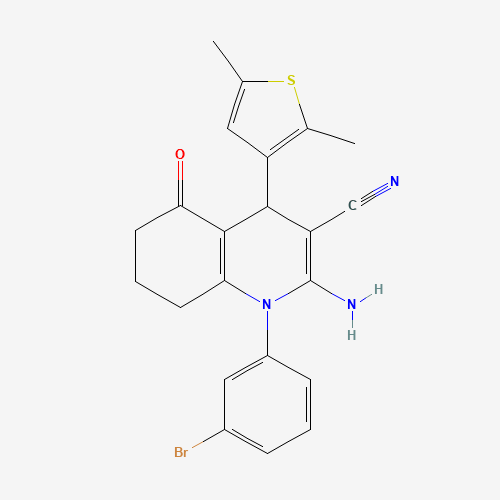 - Name: 2-Amino-1-(3-bromophenyl)-4-(2,5-dimethylthiophen-3-yl)-5-oxo-1,4,5,6,7,8-hexahydroquinoline-3-carbonitrile